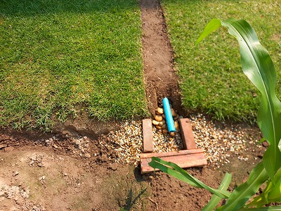 土戻し ほっとけば芝が伸びるだろう 排水入り口 芝より低くする