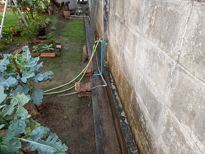 裏の屋根からの排水が庭に入って来てたので、側溝へ流すようにとジョイント理恵さん購入