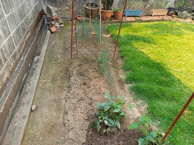 奇麗な花 黒いインゲンか? トマト撤収と同時に種蒔
