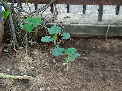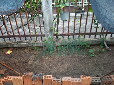 かぼちゃ 1個は出来て欲しいなー ねぎ 太陽が当たるが元気だ!