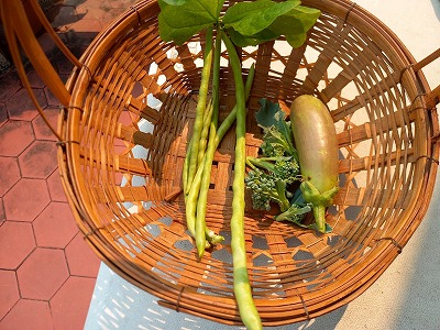 ベランダ前の畑 ヤシの木の根っこ 取り出せない 本日の収穫 ブロッコリーミニミニ・・・