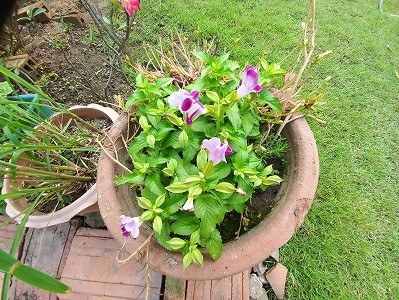 ゴルフ侍 見ながらマンゴー2つ 塩こうじ漬物へ トレニア 最近また咲き始めた!