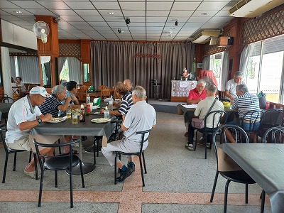 練習場2階ホールインワンへ 表彰式前の雑談と昼食