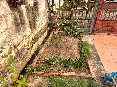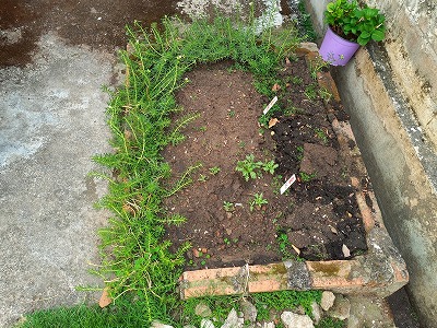 側溝の土を右側へ 良い土になるか? 一カ月もしないで雑草が生える