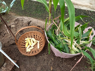本日の収穫 ミニとうもろこしが・・・ 花も必要だろう
