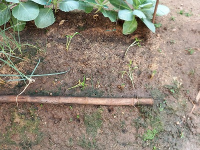 空芯菜とキューリの路地植え 万次郎ではないけれど(トレニア)で少し花を咲かせたいなーと・・・