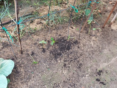 空芯菜 2か所へ分散して8本 キューリ 6本