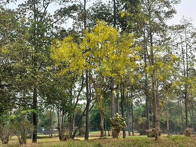 (今まで気にしなかった黄色い花=ラチャプルック 結構ランナーゴルフ場に多いなー!)