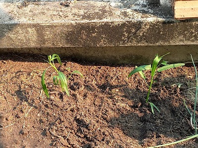 水撒きで雑草が伸びるなー 奥は次回 アンチャン全部で5本 右はインゲン