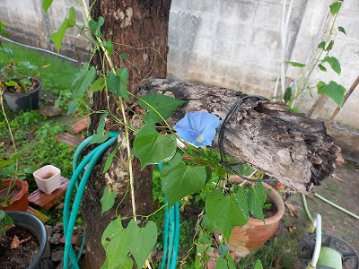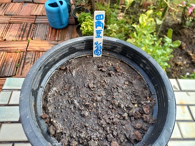 ここだけしか朝顔花が咲かない 6か所もあるのになー 四角豆 5粒種蒔 撤収作業あるのだが・・・