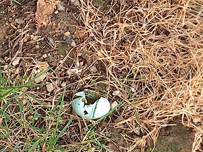 16時過ぎ庭の点検で発見 後でもう1個 見つけた 上空はマンゴーの木 巣 それらしきものはない?