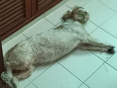17時 暑さで参ったのか―・・・俺もだよ! こうなると犬も人間も一緒だ