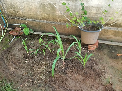 空芯菜種のじかまき 4本から倍に とうもろこし