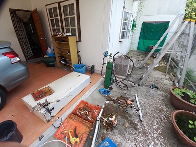 9時過ぎに2階のクーラーを一階に移動しに来た、昔のクーラーでもあるし大変だろうなーと