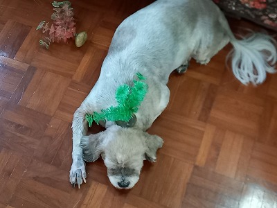 パンとスイカ食べて、散歩で今日は3人で アンチャンの所までで9枚の花頂 家の一枚追加
