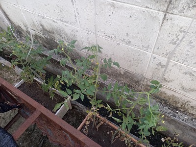 アロンでは無理か― コードクランプで・・・ 努力しているのにトマトまだ元気ないなー
