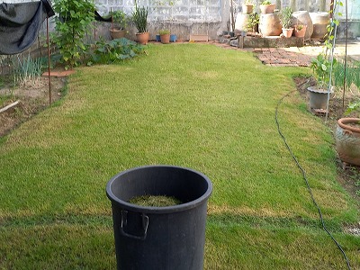 大きいバケツ一杯刈った芝 まだ残っているがここで終了