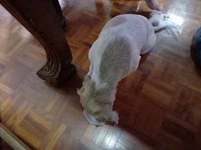 17時過ぎ夕食 タイミングよくルンも一緒に食べた 頂いたウイスキーを飲みすぎたか?