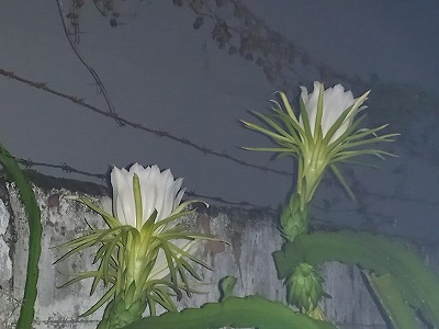 昨日の朝の散歩へいざ アップ忘れた 出かける前びっくり ドラゴンフルーツ咲いた!