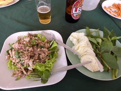 前掛けに文字が ラーンクンレック 初めて見たなー ラープイサーンムーにレバーを入れてもらう