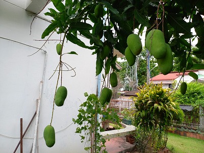 庭の点検すると小さいナスは沢山あったが、マンゴーがいつものように2個自然落下している?