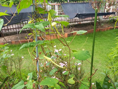 四角豆花はいっぱい咲いているのだが・・・ 収穫は一個だけ これからなんだろうなー・・・