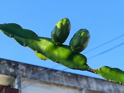 マメ科なんだが調べても分からん またまたドラゴンフルーツのつぼみ