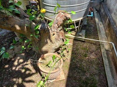 マンゴーの木の下の雑草取り タンク周辺も トポス多いに成長している