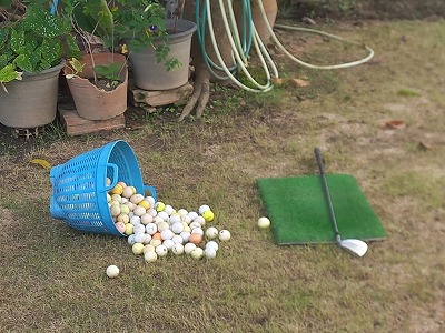 少し男子ゴルフを見てから、1か月半ぶりに我が家での素振りとサンドウエッジでの練習