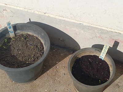 2か所植替え用に畑の耕し 30cmほど掘り返す 鉢の準備は出来ている・・・