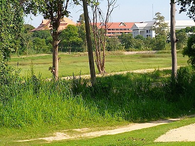 ผัดหมี่ซั่ว パットミースアー 中華風ヤキソバ キュウリ畑の手前の造成 ネギは左奥へ移動