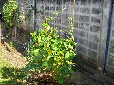 フジマメの下に畑耕す 小豆 鉄棒を横へ打ち込み これもお願いする