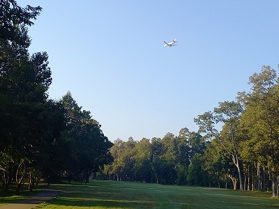 5番ロング 飛行機が逆に飛んでいる 風向きとはいえ2・3年? 見たことが無い?