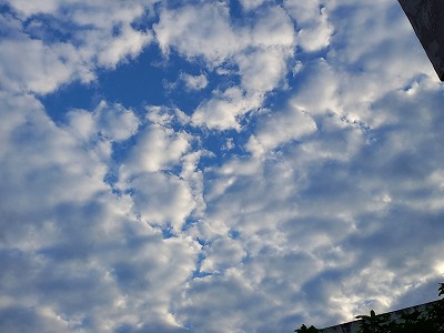 朝曇り空(うろこ雲)9時過ぎには太陽が姿見えるが気温は室内上がらない・・・
