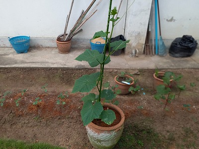 ズッキーニ 9本のうち4本がだめだー 1本元気に育って入るがどうなるか
