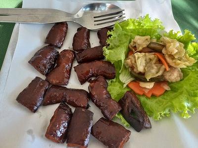 クンレックでの7人で昼食 サイポロートート(豚肉の腸揚げ) つまみには良いなー!