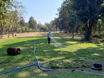 山も見えて青空が広がり、やはり最終4ホールほどは熱い! ・・・山は見えたのでPM2.5は悪化していない?