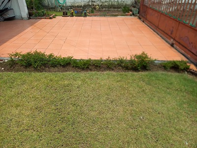 門の所の(メキシコハナヤナギ)周辺の雑草取りをするが、蟻にかまれ暑さで汗びっしょり