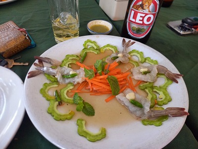 10時40分終了し、8人でのクンレックでの昼食 クンチェーナムプラー(生エビ)