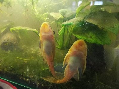 お昼休みを自分の部屋で 13時Tさんが熱帯魚 (プレコ)2匹持って来てくれる