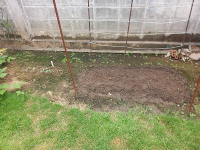 7時にMちゃん助っ人で登場 裏の側溝と先日買った種を・・・日本ネギ・豆・・・・・