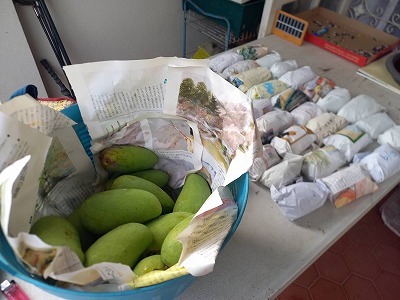 塀の蔓のかっと・マンゴーの袋包み 100個以上の収穫 さてそれをどうしたもんだろうか?