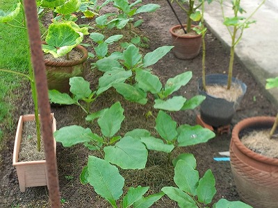 キュウリ・ナスは元気 花が咲くのを待つばかり ドラゴンフルーツ 何故? もう4個食べたんだよー