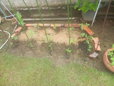 トマト畑に手前に グリーピース苗5本試す 本日の収穫