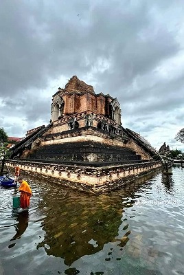 (Mちゃんから朝写真が届く ワット・チュディー・ルアン こんな姿に洪水だー 初めて見るなー)