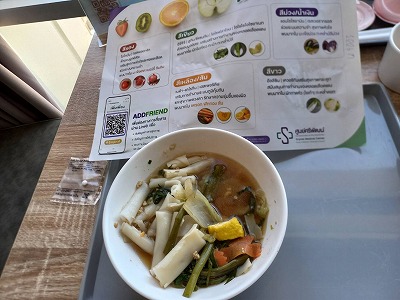 (太麺(いろんな材料が・・・)とコーンスープとショウガスープ)
