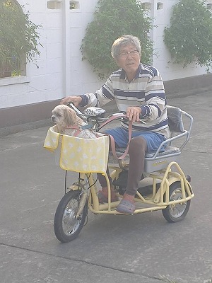 今日は散歩どうするか? シニアカーを持ち出いて一緒に広場まで そこからシニアカーに載せていつものコース