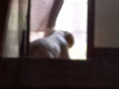 吠えられてもびくともしない 中2階から吠えてる 反省があるのか下に降りてこない