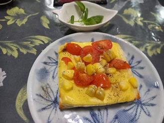 朝ドラ見ながら、朝食 紫蘇も少しだけお飾りに・・・ (おむすび)お父さん理解できるなー・・・