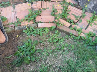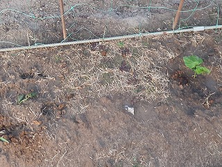 奥の(ゴーヤ)日当たりが強いのかとネット張りながら周辺の雑草取り ついでに日本ネギの側溝作成!